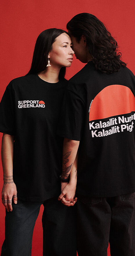 Support Greenland T-shirtsen på denna sida har utvecklats i samarbete med Landsorganisationen för grönländare i Danmark (UAGUT). Hela överskottet från försäljningen av dessa T-shirts går direkt till UAGUT och stödjer deras arbete för Grönlands väg mot självständighet.
